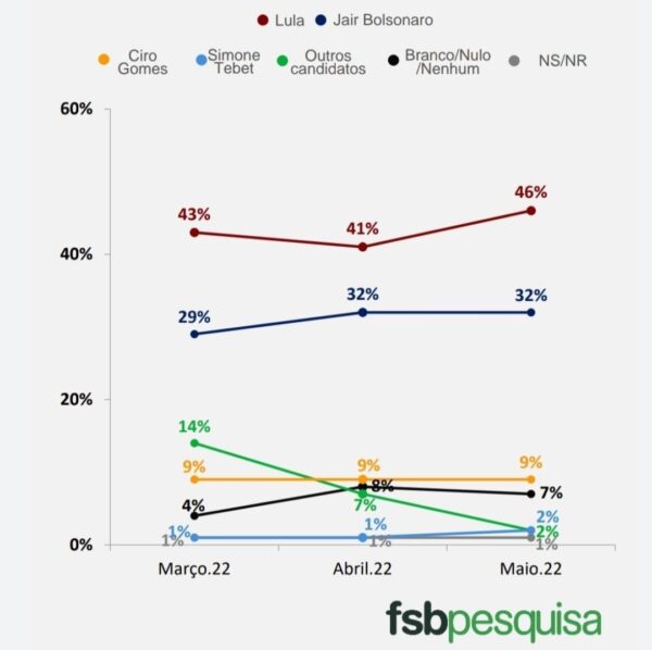 Byadminmaio 31, 2022Em caso de segundo turno, a vantagem de Lula sobre Bolsonaro é de 19 pontos. 247 Pesquisa telefônica do Instituto FSB, patrocinada pelo...