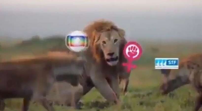 Nas imagens, a Corte é retratada como uma hiena que em bando tenta atacar um leão, que faz alusão ao presidente da República.
