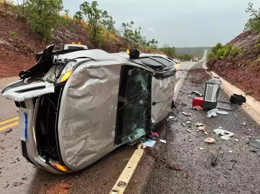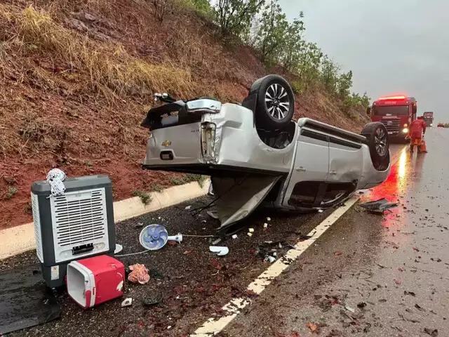 Caminhonete capota várias vezes na BR-359 entre Alcinópolis e Coxim e deixa três pessoas feridas