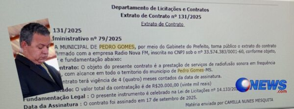 Byadminsetembro 21, 2025A emissora de rádio ligada ao ex-prefeito Vanderley Mota, celebrou um contrato no valor de R$ 20 mil reais com a prefeitura pedrogomense....