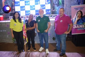 Pedro Gomes: Ao lado de vereador Sandoval, prefeito Murilo inaugura primeiro parquinho infantil da cidade.