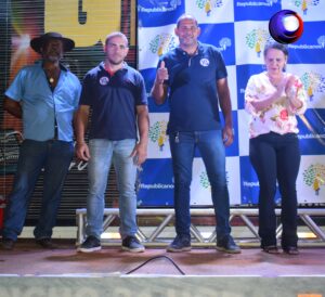 Pedro Gomes: Ao lado de vereador Sandoval, prefeito Murilo inaugura primeiro parquinho infantil da cidade.