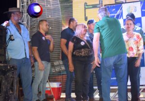 Pedro Gomes: Ao lado de vereador Sandoval, prefeito Murilo inaugura primeiro parquinho infantil da cidade.