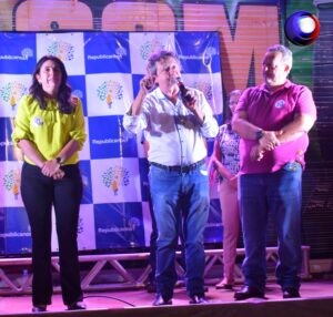Pedro Gomes: Ao lado de vereador Sandoval, prefeito Murilo inaugura primeiro parquinho infantil da cidade.