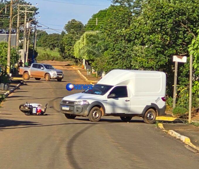 Pedro Gomes: Agora; motociclita é atropelada no bairro São Luiz; apenas escoriações