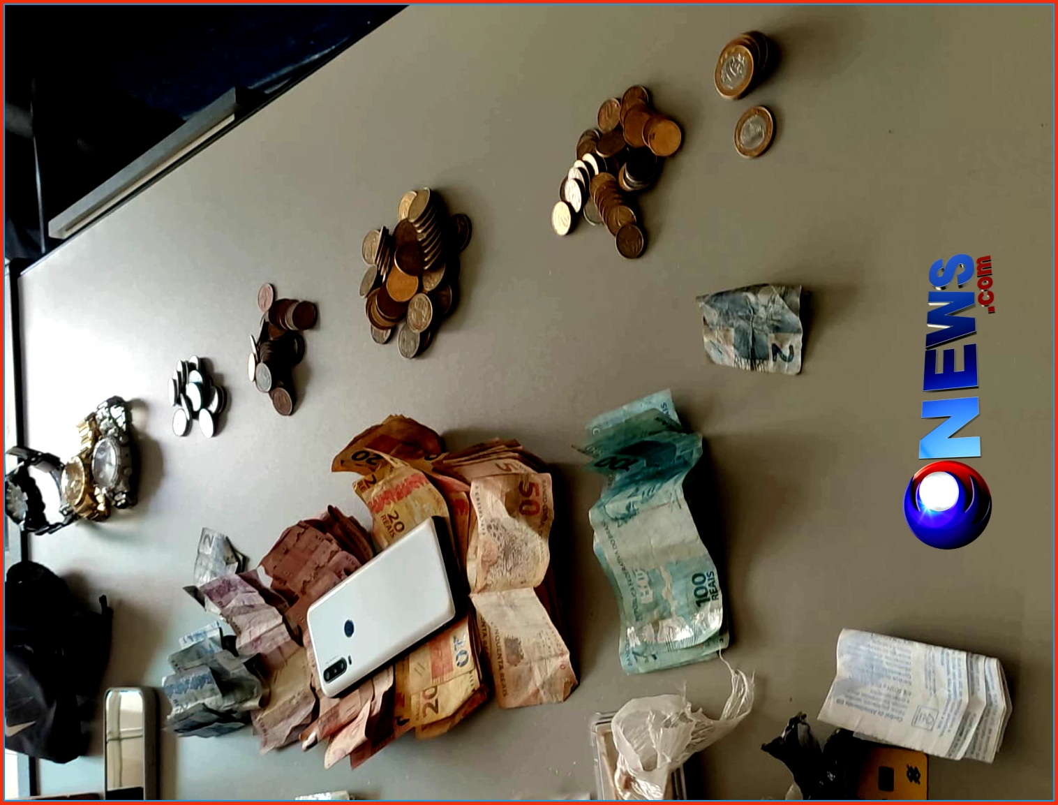Foi feito uma varredura na casa, onde foi encontrado um celular e muito dinheiro que estavam separados: R$ 1.816,00 em espécie e R$ 34,00 em moedas.