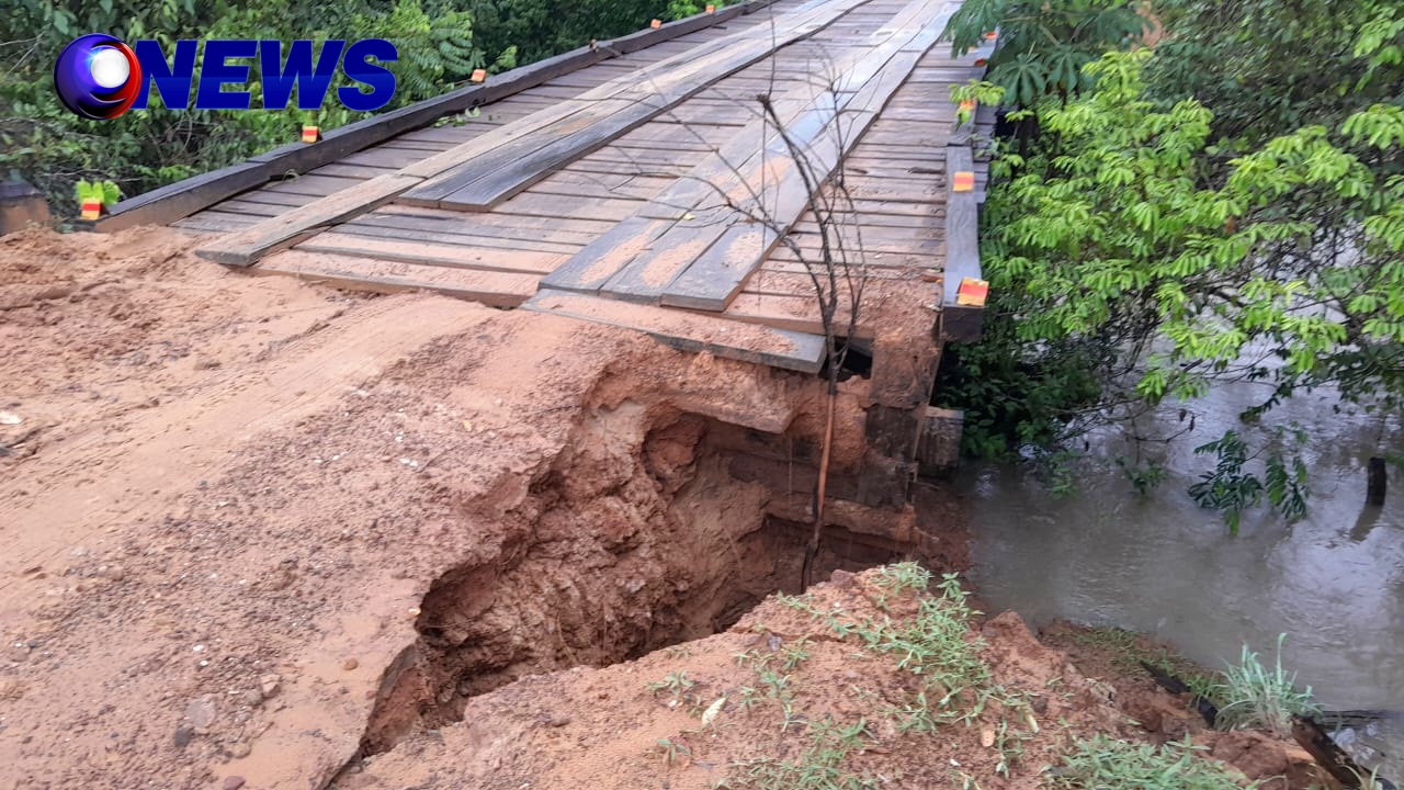 Devido as chuvas ocorrida durante a noite e madrugada desta segunda-feira, 20 a ponte sob o ‘Córrego do Lobo’ está interditada.