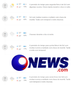 São esperados até 14 milímetros de chuva e ventos. As temperaturas oscilarão entre 22°C e 29°C.