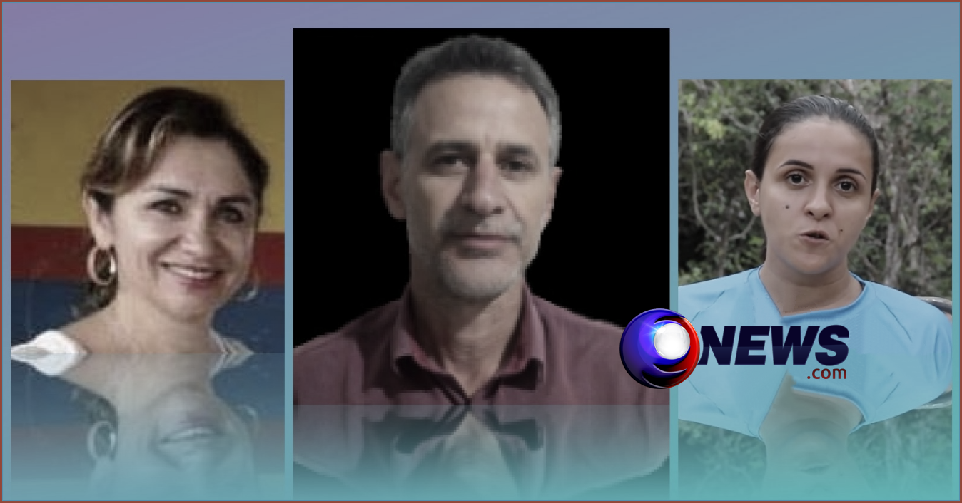Pedro Gomes: Eleições 2024; Normando Mota entre duas mulheres: Maura Mota e Jackeline Figueiredo