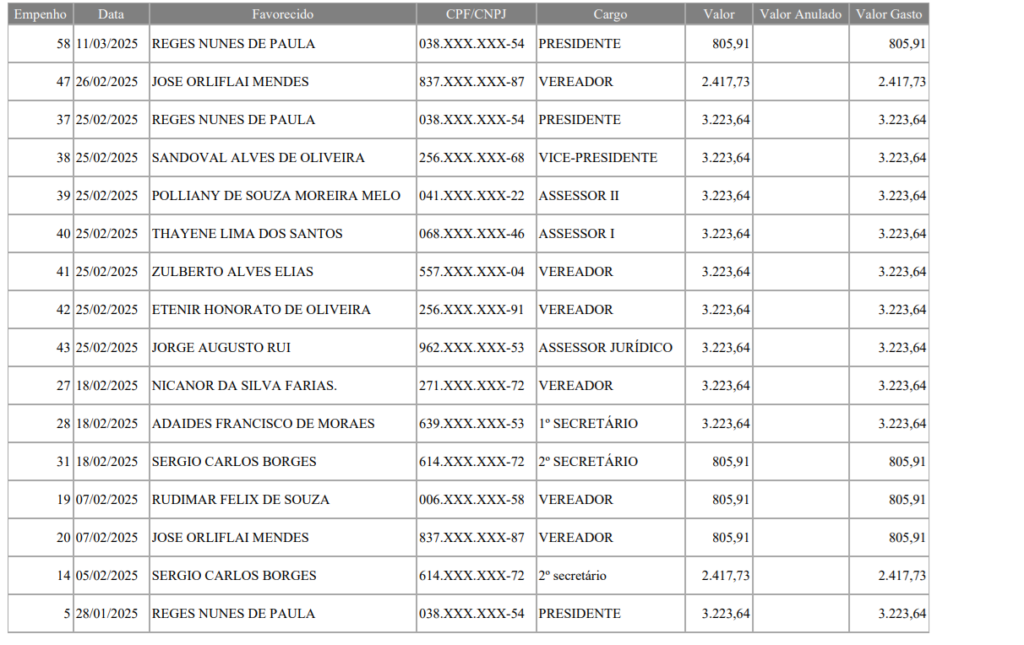 A Câmara Municipal de Vereadores de Pedro Gomes retirou somente nos primeiros meses do ano um total de R$42.713,23 em diárias. Os valores estão disponíveis no Portal da Transparência. O vereador que comanda a Casa de Leis, Reges Nunes de Paula (PP) embolsou sozinho R$7.253,19. Isso, fora o seu salário de vereança que é, R$ 5.370,45.