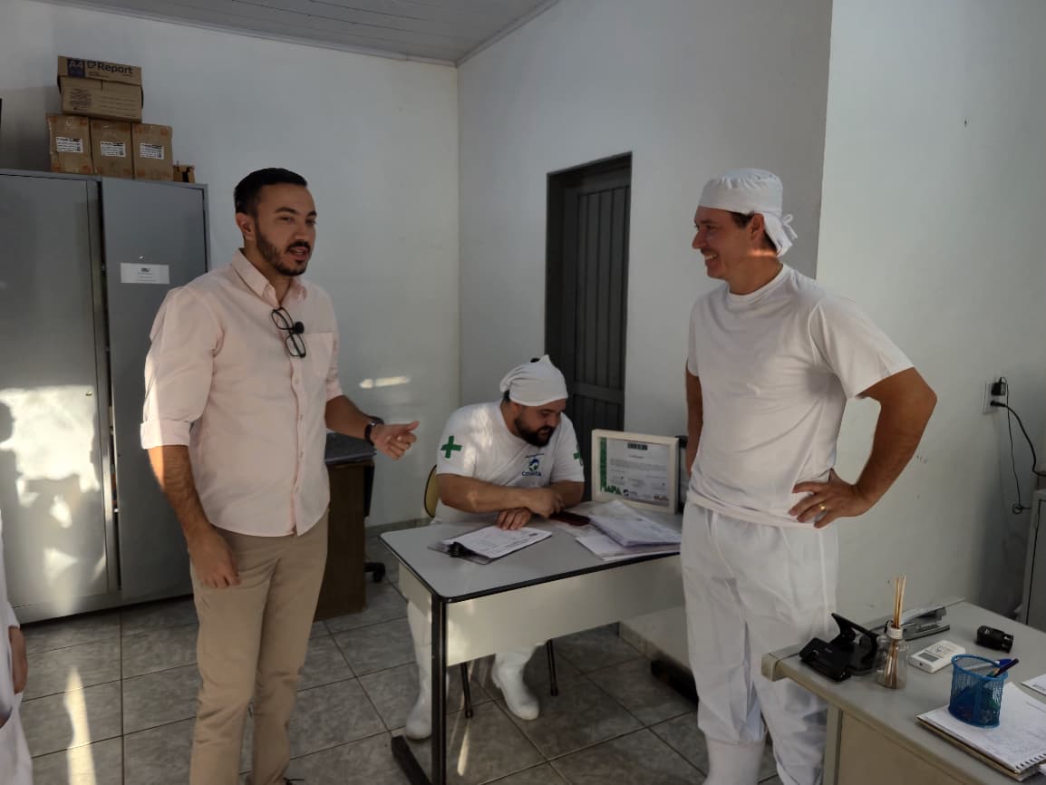 Na manhã desta quinta-feira (6), o prefeito de Pedro Gomes, Delegado Murilo, e o secretário de Desenvolvimento Econômico, Rodrigo Scalabrini, acompanharam a retomada do abate de bovinos no Frigorífico Pedro Gomes. O estabelecimento recebeu o Selo de Inspeção do Sistema Brasileiro de Inspeção de Produtos de Origem Animal (SISB), que autoriza a comercialização da carne em todo o território nacional.