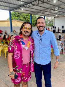 Pedro Gomes: Ao lado de vereador Sandoval, prefeito Murilo inaugura primeiro parquinho infantil da cidade.