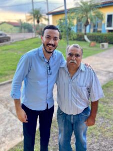 Pedro Gomes: Ao lado de vereador Sandoval, prefeito Murilo inaugura primeiro parquinho infantil da cidade.