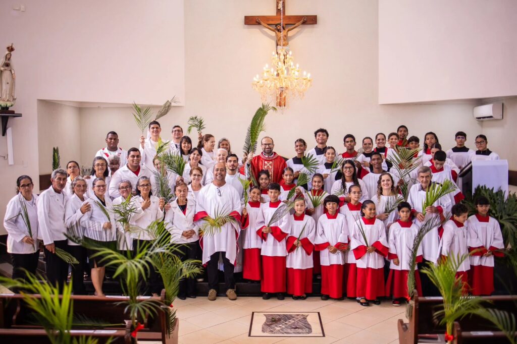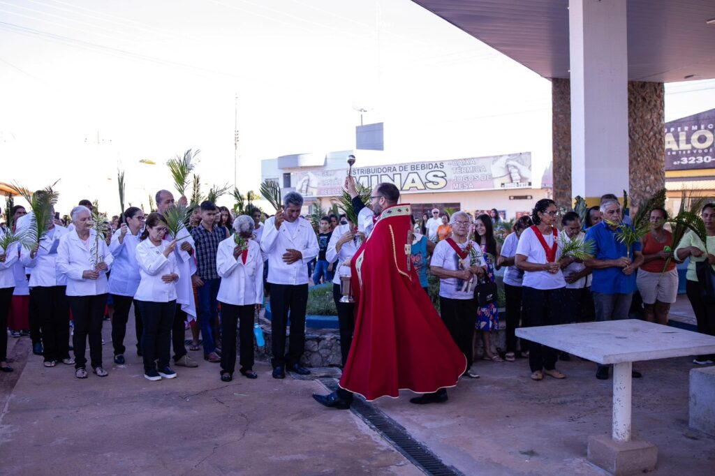A cerimônia teve início com a bênção dos ramos na Praça Central, seguida por procissão até o interior da igreja e a celebração da missa. Centenas de fiéis participaram do momento, considerado um dos mais simbólicos do calendário litúrgico cristão.