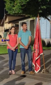 Pedro Gomes: Ao lado de vereador Sandoval, prefeito Murilo inaugura primeiro parquinho infantil da cidade.