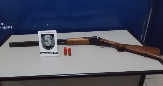 Lar ♦PEDRO GOMES Pedro Gomes: Polícia Militar apreende espingarda calibre 12 após denúncia anônima