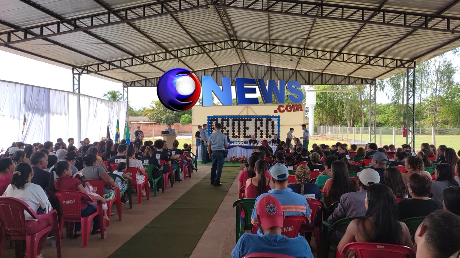 A cerimônia que contou com o Comandante do 5º Batalhão de Polícia Militar, Coronel James Magno Morais Silveira, o Comandante do 1º Pelotão de Pedro Gomes, Tenente Manoel Moreira de Oliveira, e o Prefeito Municipal Willian Luiz Fontoura, além da Secretária Municipal de Educação, Professora Luzia Ferreira de Camargo, e diversas outras autoridades locais.