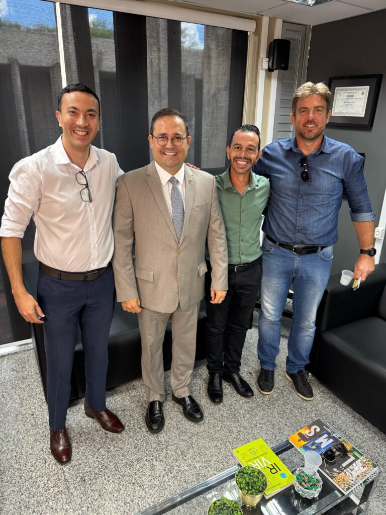 Nesta terça-feira (08), o prefeito de Pedro Gomes, Delegado Murilo, esteve em Campo Grande, onde cumpriu uma série de agendas políticas em busca de recursos e investimentos para o município. Acompanhado do vereador Rudimar Félix e do chefe de gabinete Laerte Ecker, Murilo foi recebido por autoridades estaduais, entre elas o deputado Márcio Fernandes, que garantiu a destinação de R$ 300 mil por meio de emenda parlamentar.