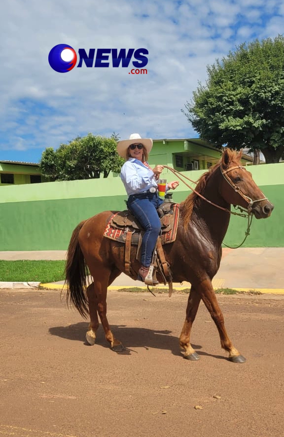 A prefeita da cidade vizinha, Clarice Ewerling (MDB) e alguns dos seu secretariado-, assim como no ano passado participaram do ato. Em parte do percurso a emedebista, foi montada em seu cavalo.
