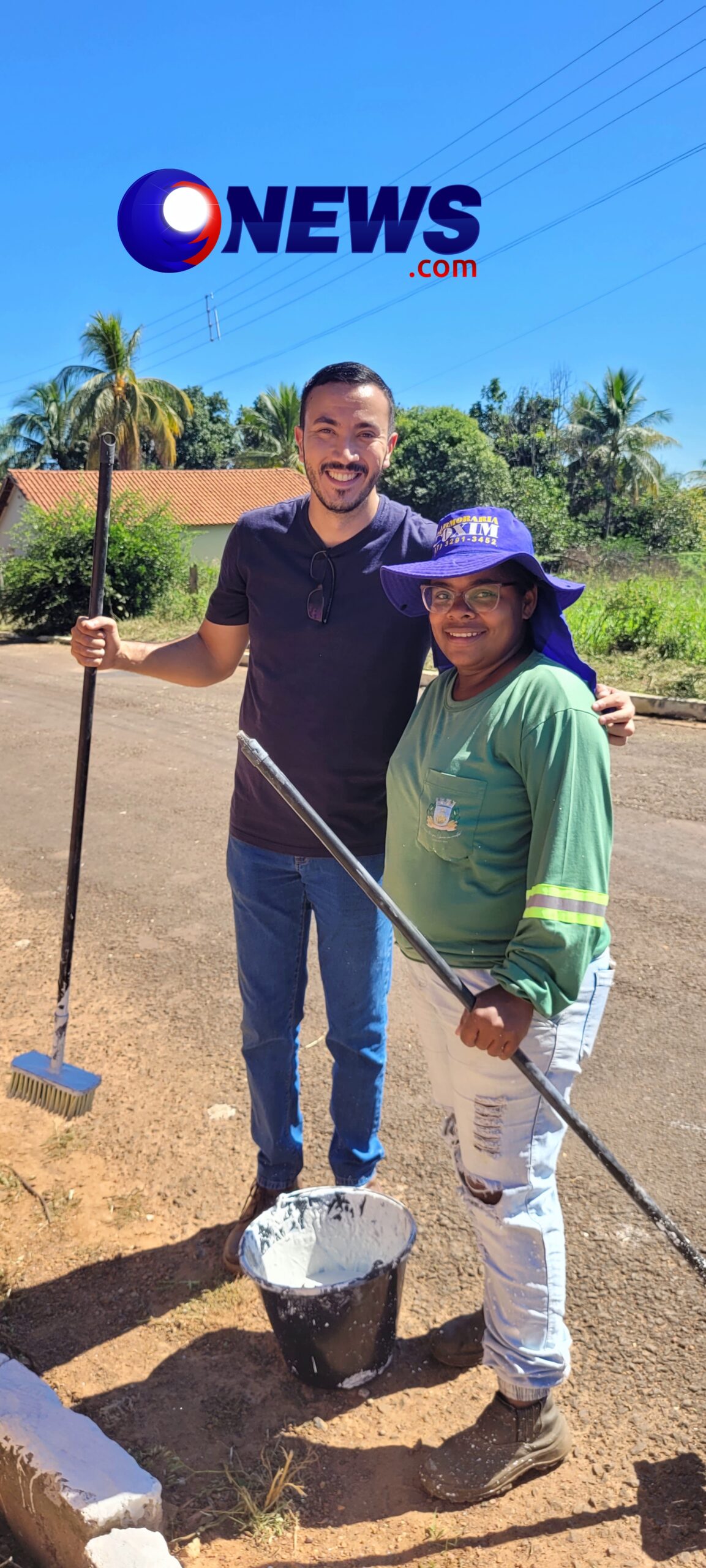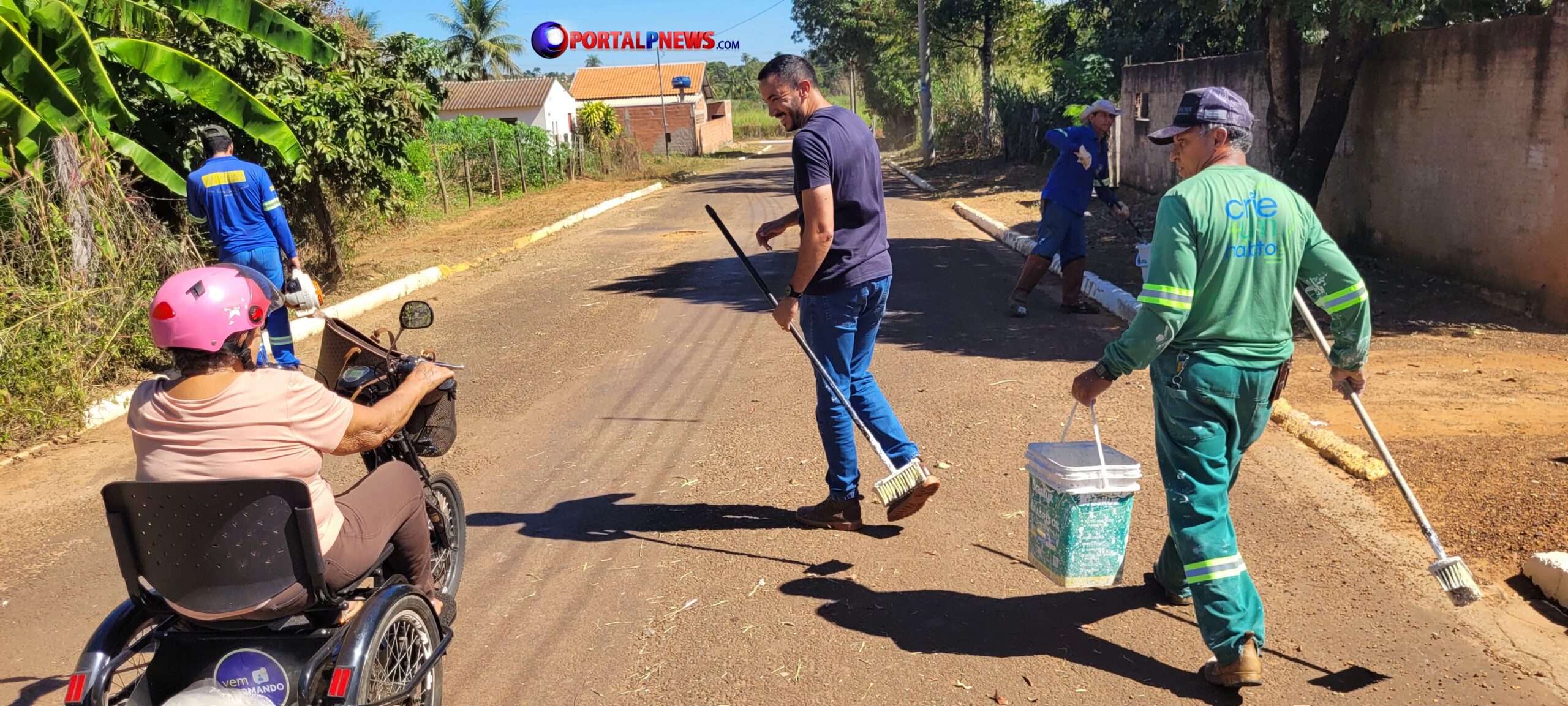 Murilo era o mais animado durante os trabalhos. O gestor pintou o meio-fio e proseava com os moradores. O prefeito reconheceu a organização dos moradores que colocaram os entulhos na frente das casas para facilitar o recolhimento por parte dos maquinários da prefeitura.