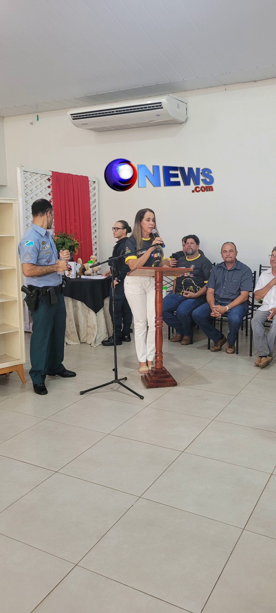 A solenidade contou ainda com a presença do comandante do 5º BPM, Tenente-Coronel Adriano Rodrigues de Oliveira, do Presidente da Câmara Municipal, vereador Réges Nunes de Paula, da Secretária de Educação Professora Sueli Marques, do Presidente do Conselho de Segurança Subtenente Cleiton Robison Pagno Cordeiro, além de outras autoridades civis e militares.