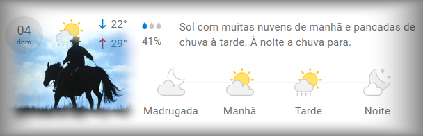 Lar ♦ENTRETENIMENTO Previsão do Tempo: domingo de Cavalgada poderá ter chuva no período da tarde em Pedro Gomes