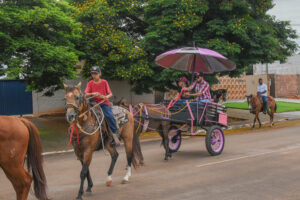 Este ano teve participação reduzida de cavaleiros e amazonas e mais contornos políticos. Um boné cor de rosa e até charrete-, uma publicidade disfarçada para Clarice Ewerlig, virtual candidata do MDB. O evento teve também apoio da gestão do prefeito Enelto Ramos (PP) mas, era evidente a tentativa dos correligionários do MDB buscar projetar Clarice.