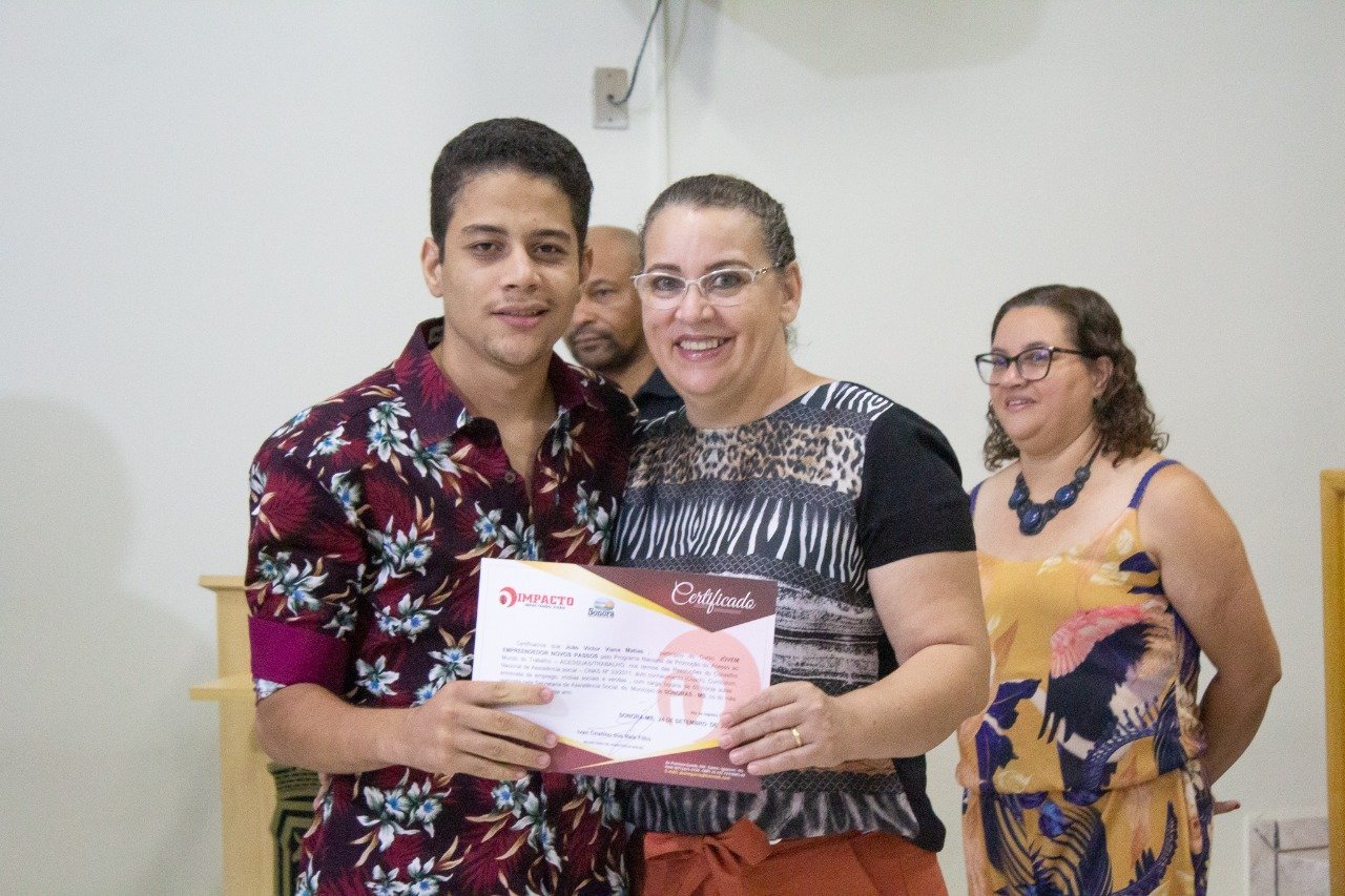 Na noite de terça-feira (24), o prefeito Municipal de Sonora Enelto Ramos, juntamente com a primeira dama Adenir Franco, do presidente da Câmara de Vereadores Raphael de Lemos e do gerente de obras Antônio João, participaram a convite do gerente de Assistência Social e Trabalho Ivan Cristino da solenidade de entrega de 62 certificados de participação e conclusão do curso “Jovem Empreendedor Novos Passos”.