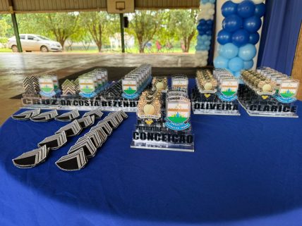 A solenidade contou ainda com homenagens a autoridades e parceiros que apoiam o Patrulha Mirim, entre eles a prefeita municipal Clarice Ewerling, o presidente da Câmara Municipal Laudir Junior, o gerente de Educação professor Josevan Lopes, o gerente de Assistência Social professor Thom Lopes, o vice-prefeito Jansen Peixonto, além de outros colaboradores que contribuíram para o êxito da iniciativa.