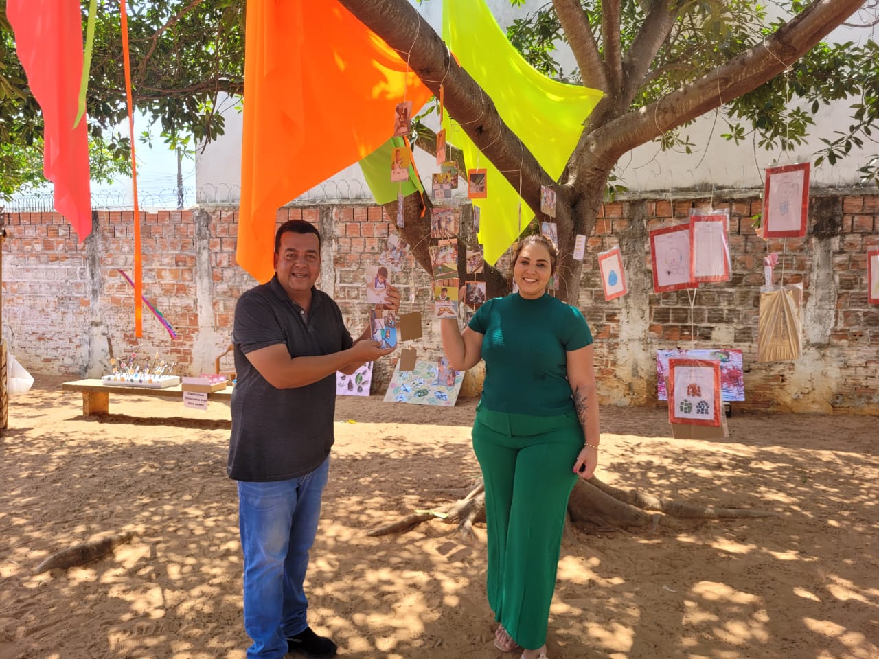 A vereadora Flávia Vasconcelos (PDT) juntamente com outra liderança politica, o ex-vereador e que também já presidiu a Casa de Leis, Ezequiel Reginaldo, visitaram a exposição do projeto cultural, Crianças Arteiras.
